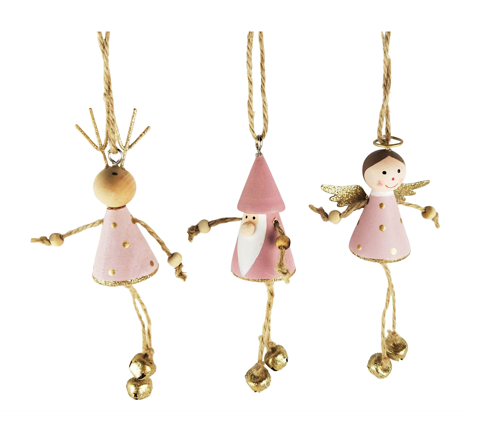 Add a little character to your tree with this little pink reindeer, Santa or angel.